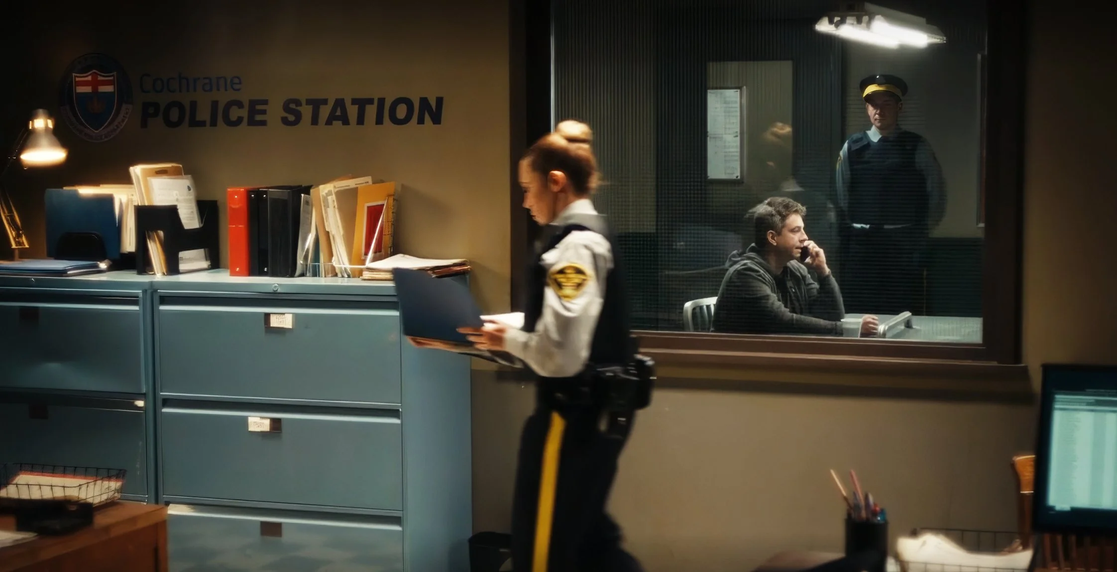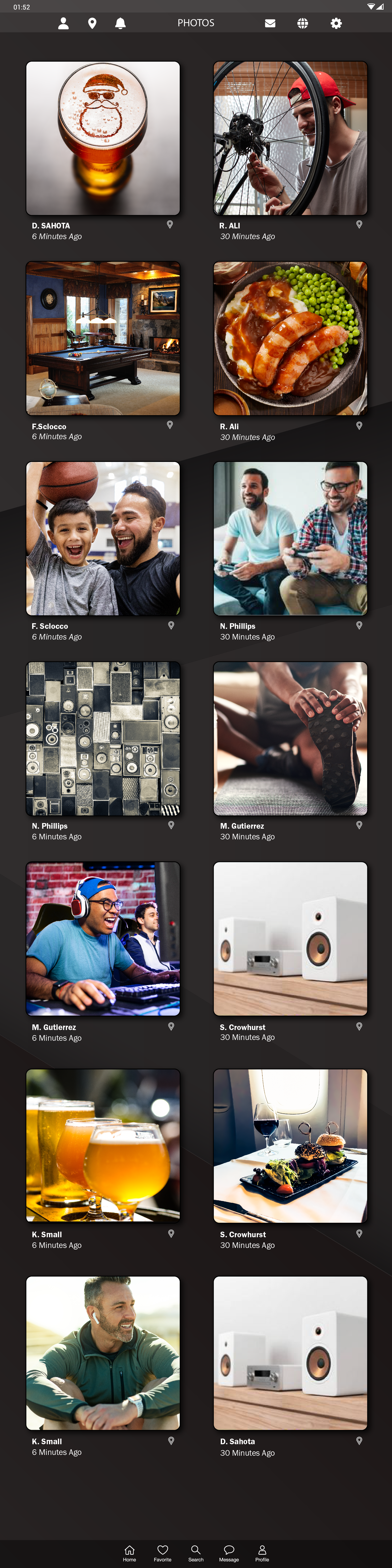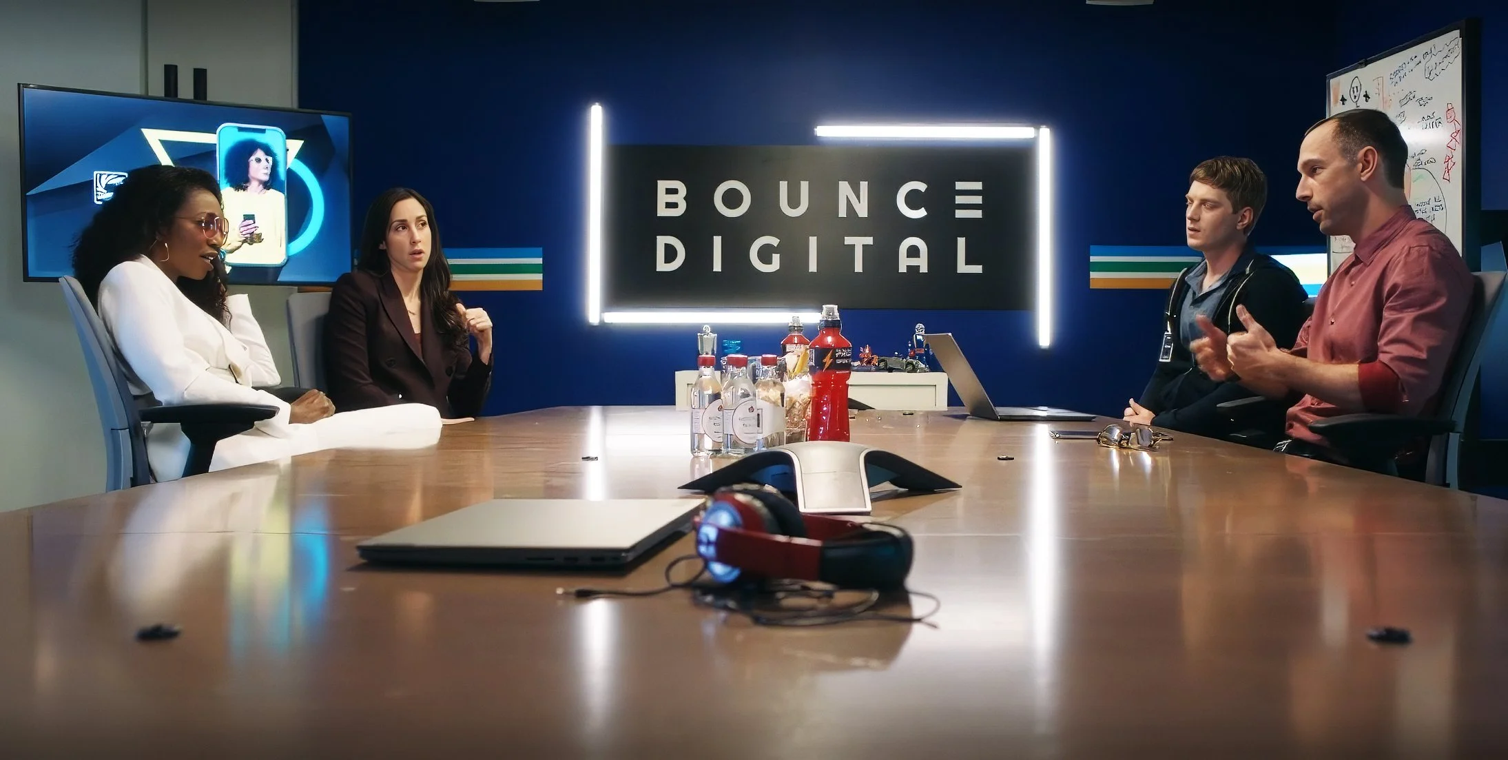 Advertising agency board room TV screens, and tablet app screens scrolls